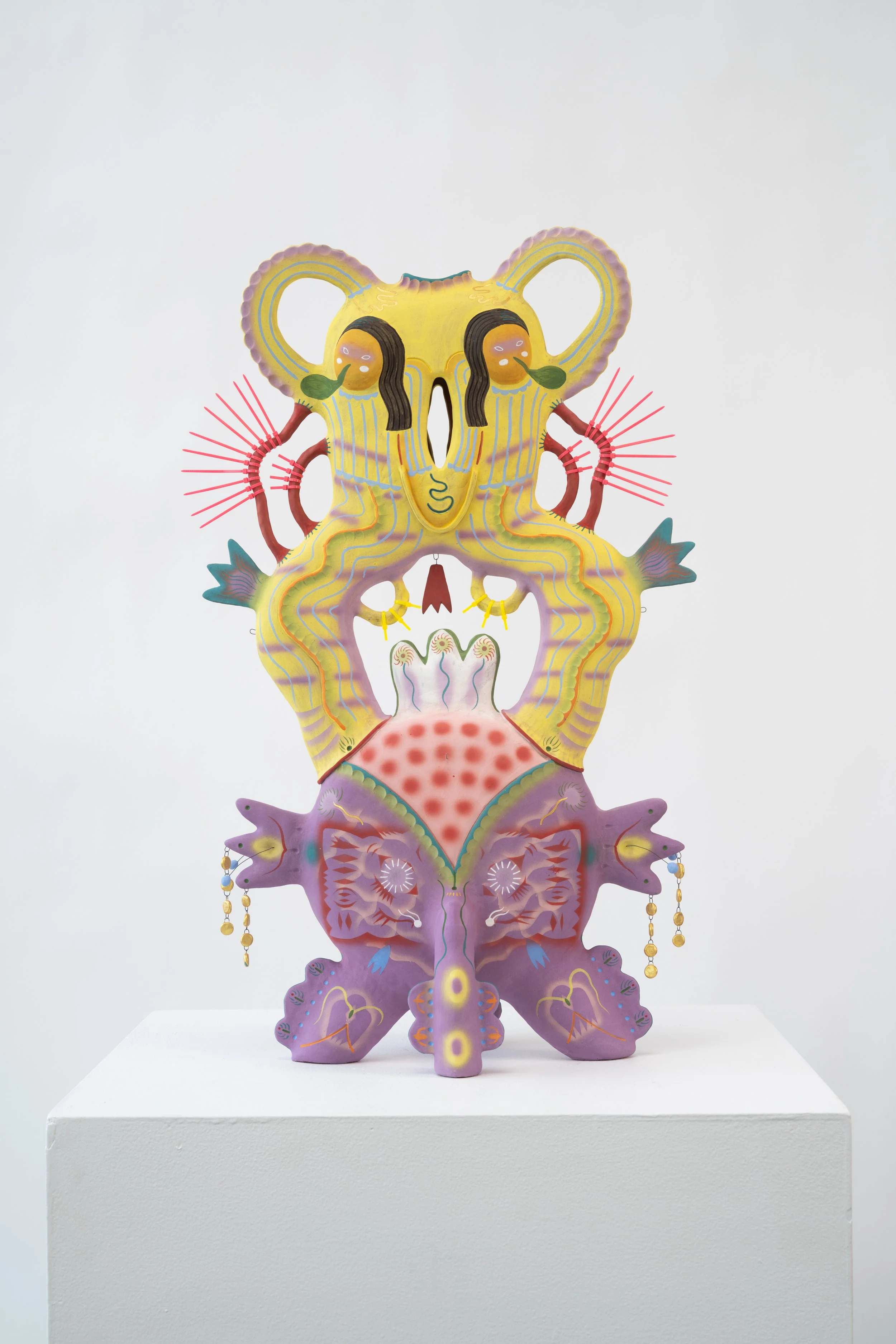 Chenlu Hou's imaginative sculptures are inspired by traditional Chinese folklore, monuments, ceremonial objects, and events in the artist's daily life. She blends together her own personal memories and interpretations of traditional storytelling into a unique artistic language that includes sharp decorative elements, and the suggestion of narrative, guided by the relationships between the human, animal, and plant elements present within each work. Chenlu Hou was born in Shandong, China, in 1989 and lives and works in Providence, RI. She received an M.A. in Decorative Art Design from Guangzhou Academy of Fine Arts, China in 2016 and an MFA in Ceramic Art from the Rhode Island School of Design in 2019. Her works have been included in exhibitions at Kristen Lorello, Yiri Arts, Taipei, Taiwan, the Houston Center for Contemporary Craft, Houston, TX, and the Archie Bray Foundation for the Ceramic Arts, Helena, Montana, among other venues.