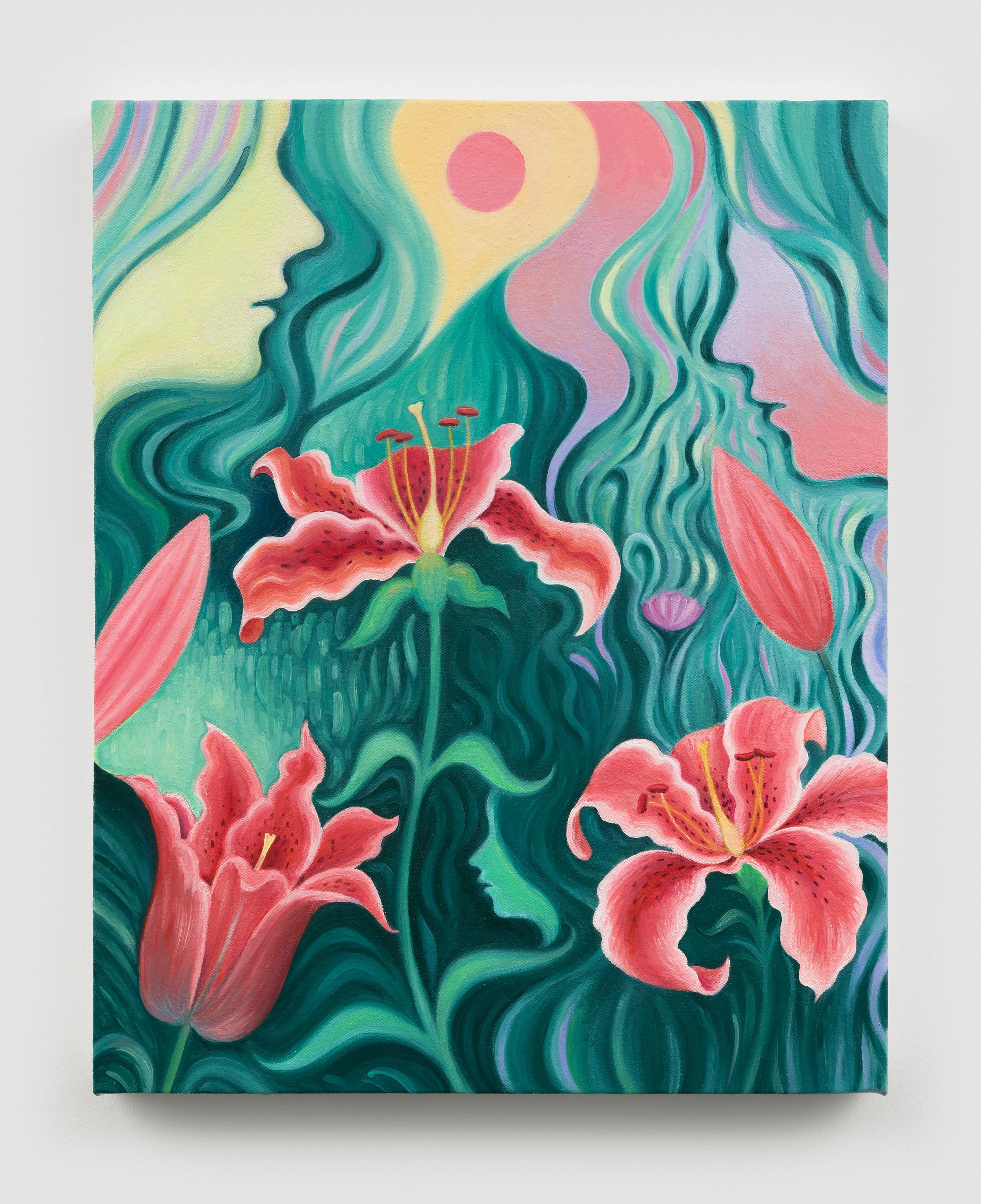 Erika Somogyi’s paintings on paper layer interlacing patterns, with flowers, fruits, and imagery of young women. Her compositions relax the boundaries between optical, pattern-based abstraction and naturalism. With a masterful use of watercolor, Somogyi transforms still lives and outdoor scenes into meditative and energetic visions. Somogyi (b. 1977) lives and works in Brooklyn, NY. Her works have been exhibited at Monya Rowe Gallery, Jack Hanley Gallery, and Essex Flowers, among other venues.
